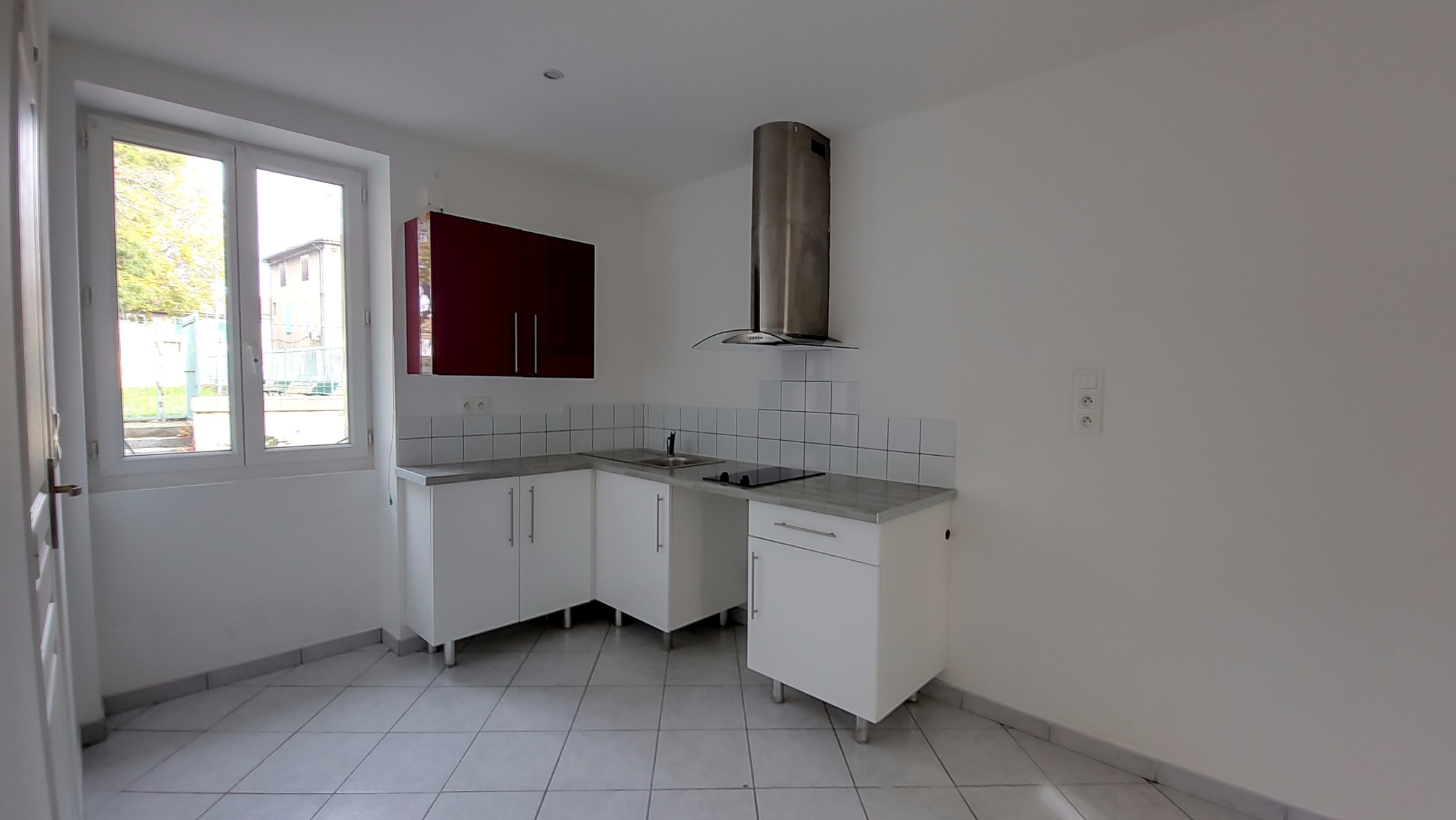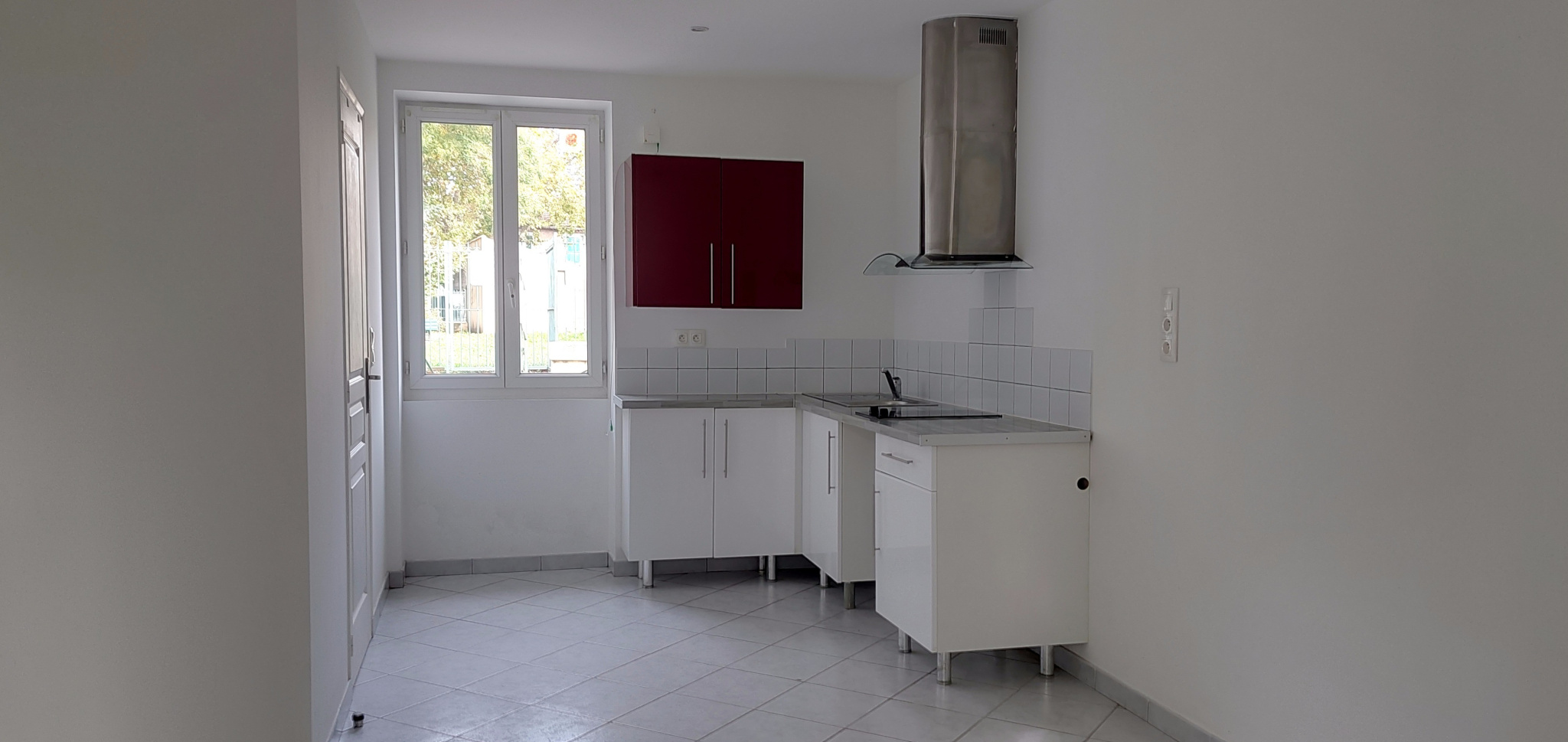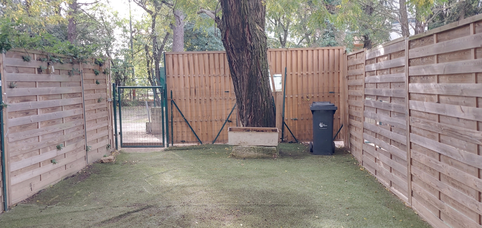 Il comprend un jardinet, une pièce de vie incluant un espace cuisine meublée et équipée d'une plaque de cuisson et d'une hotte, une salle d'eau avec WC.